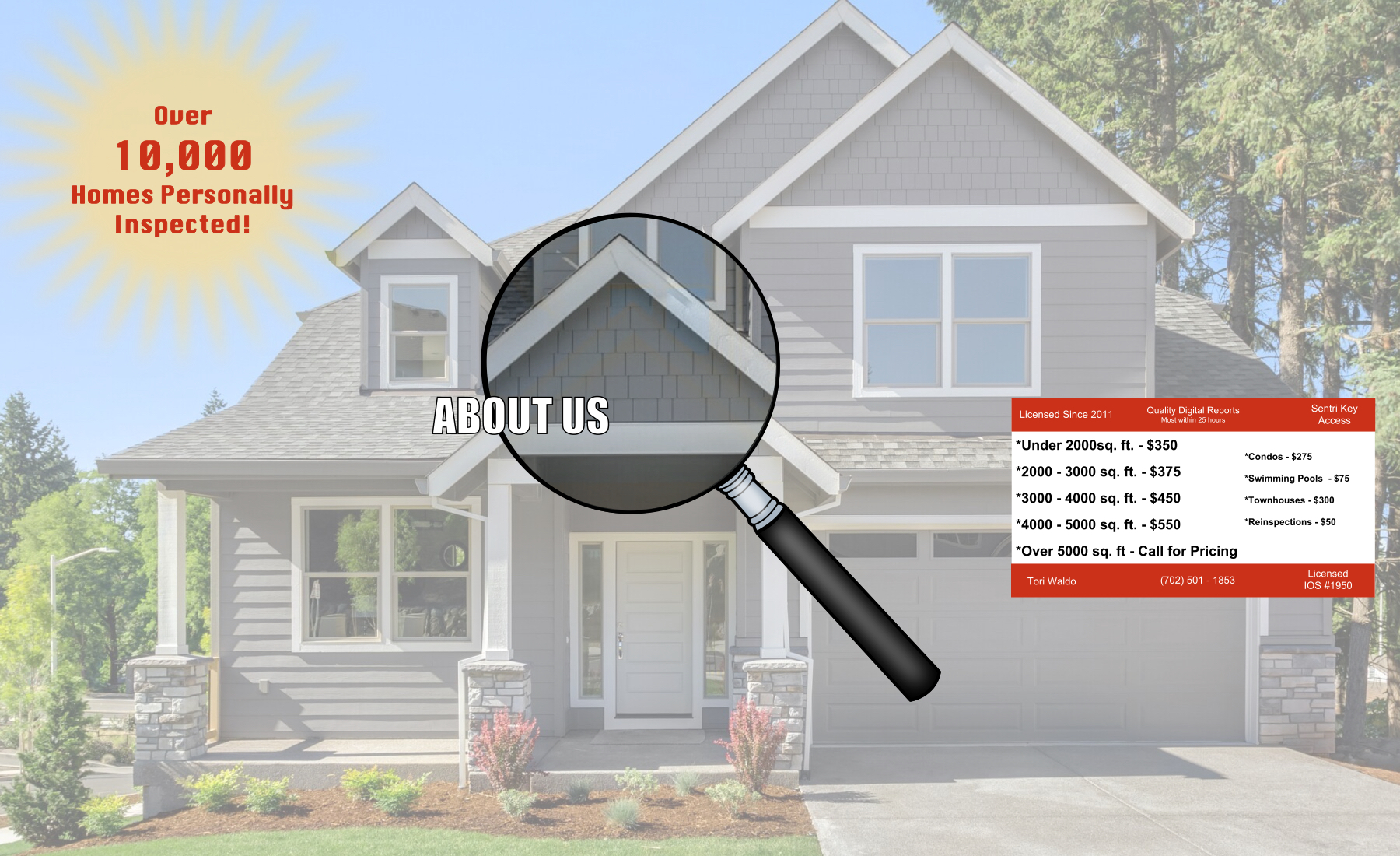 Inspector Waldo is a full service home inspection operation serving the Las Vegas Area. At Inspector Waldo, we understand how stressful the process of buying, selling or even maintaining a home can be. There are innumerable hoops to jump through to ensure that safety standards are being met, proper code procedures are being followed and long term planning is being conducted accordingly.